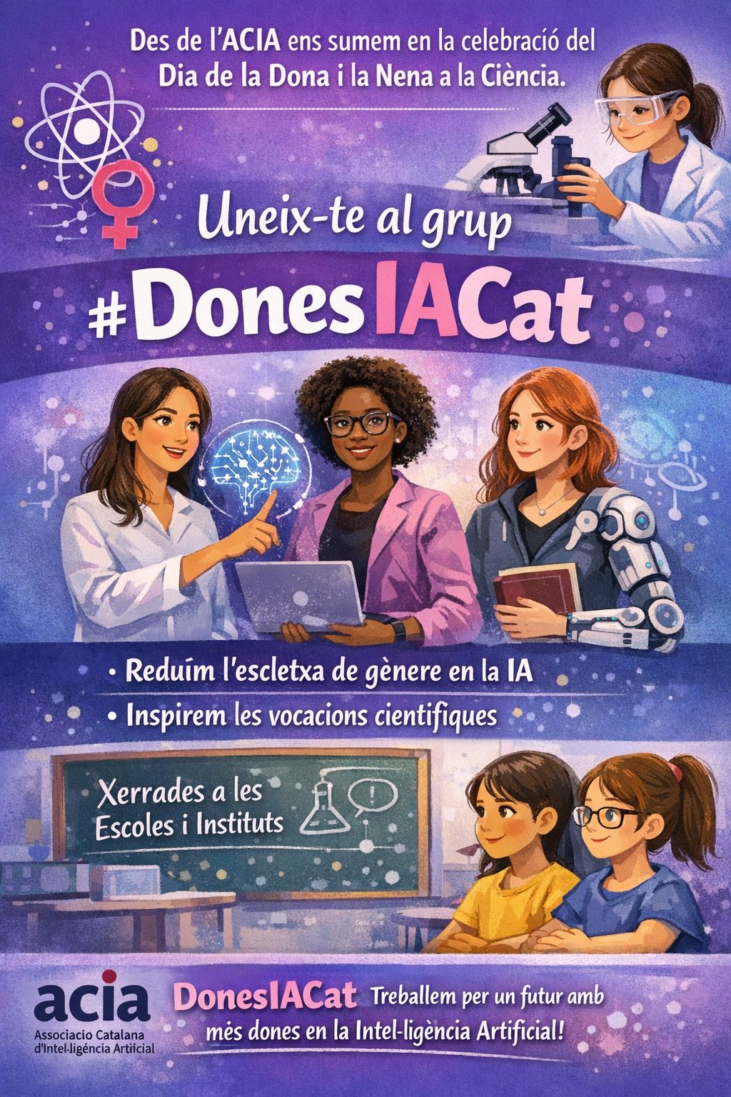 Treball per avançar cap a una societat més equitativa en termes de gènere, amb presència en comitès i processos governamentals, com la revisió de la Llei catalana de la ciència amb perspectiva de gènere.